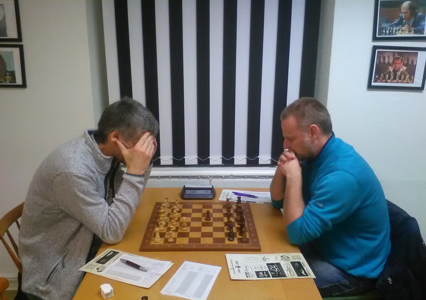 Ett av mötena i Helsingborgsmästerskapet rond 1 anno 2020, Volker Sarodnick,Helsingborgs SS – Magnus Kullberg,Helsingborgs ASK. Foto: Anders Hansen