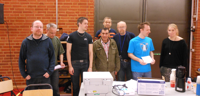 Delar av tävlingsorganisationen under Schack4ans distriktsfinal 2014. Från Vänster:Eric, Johan, Fredric, Mostafa, Nazif, Jan, Martin och Rebecca.