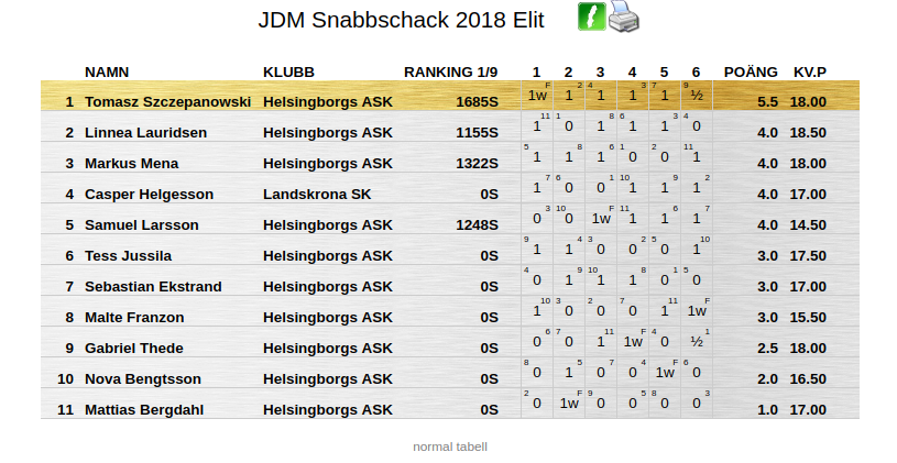 - Ylva Jussila Helsingborgs ASK 3½Â (efter särspel mot Anton Engkvist)