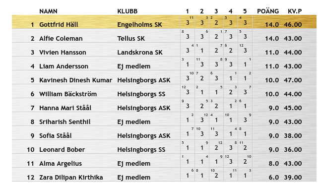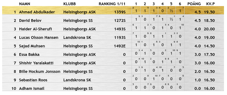 Länk till nybörjarklassen i SSF’s tävlingssystem: https://member.schack.se/ShowTournamentServlet?id=12852
